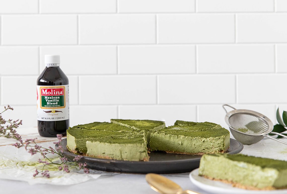 Today, we're sharing how to incorporate matcha into a cheesecake that's wonderfully light and fluffy, with an extra layer of irresistible flavor from a hint of Vanilla Molina.