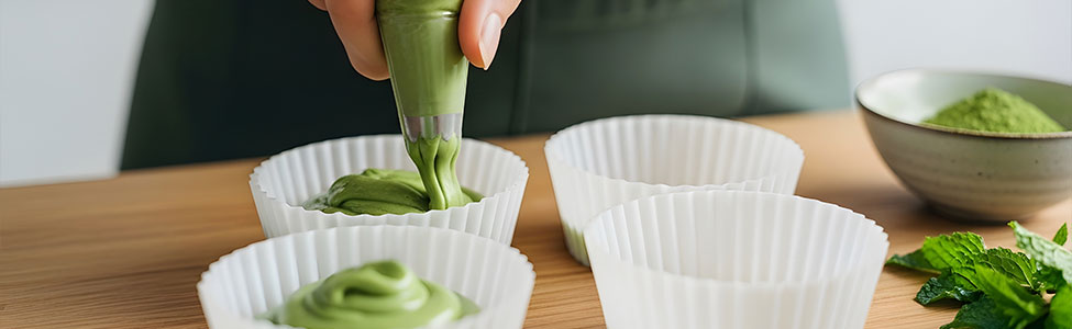 Estos cupcakes combinan el sabor herbal del matcha con la suavidad aromática de la vainilla, logrando un equilibrio perfecto para celebraciones.